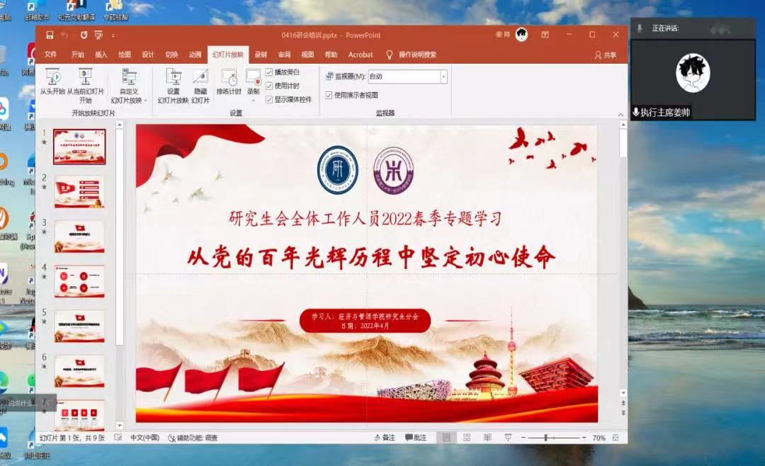 4月16日,9728太阳集团研究生会线上召开春季学期工作例会。会议由研会执行主席姜帅主持,研究生分会全体成员参加会议。