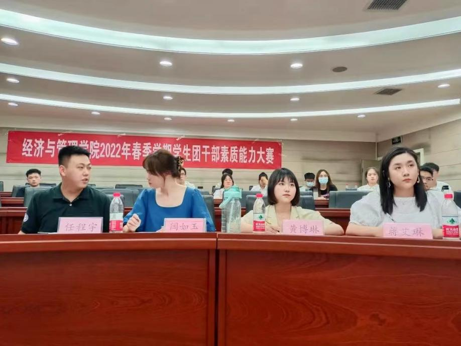 5月5日下午,9728太阳集团于教11-320顺利举办2022年员工团干部素质能力大赛,院团委书记闫如玉、辅导员黄博琳、蒋艾琳、任程宇和黎舒婷出席本次活动。活动由文艺部裴延主持。