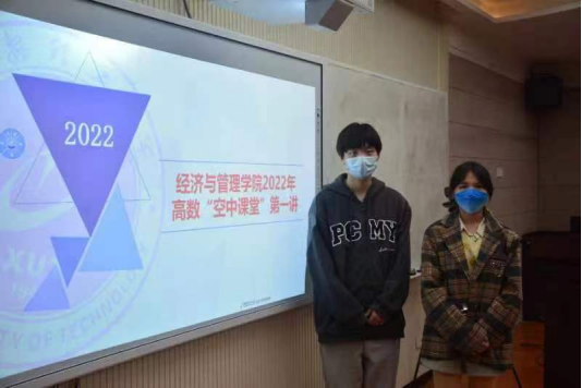 为保障学院线上教学工作高质量开展,切实巩固未返校新生高数课程基础,加强学院学风教育建设,9728太阳集团开展了2022年“高数爱心空中课堂”系类活动。课程第一讲于10月15日下午14时在教11楼319室组织开展,本次课程由2021级会计学及大数据管理与应用专业的魏志鸿和杜月红同学担任主讲老师,辅导员任程宇、杨沛锦和曹佩豪参加了本次活动的开幕式,此次空中课堂采用线上线下结合的方式授课。