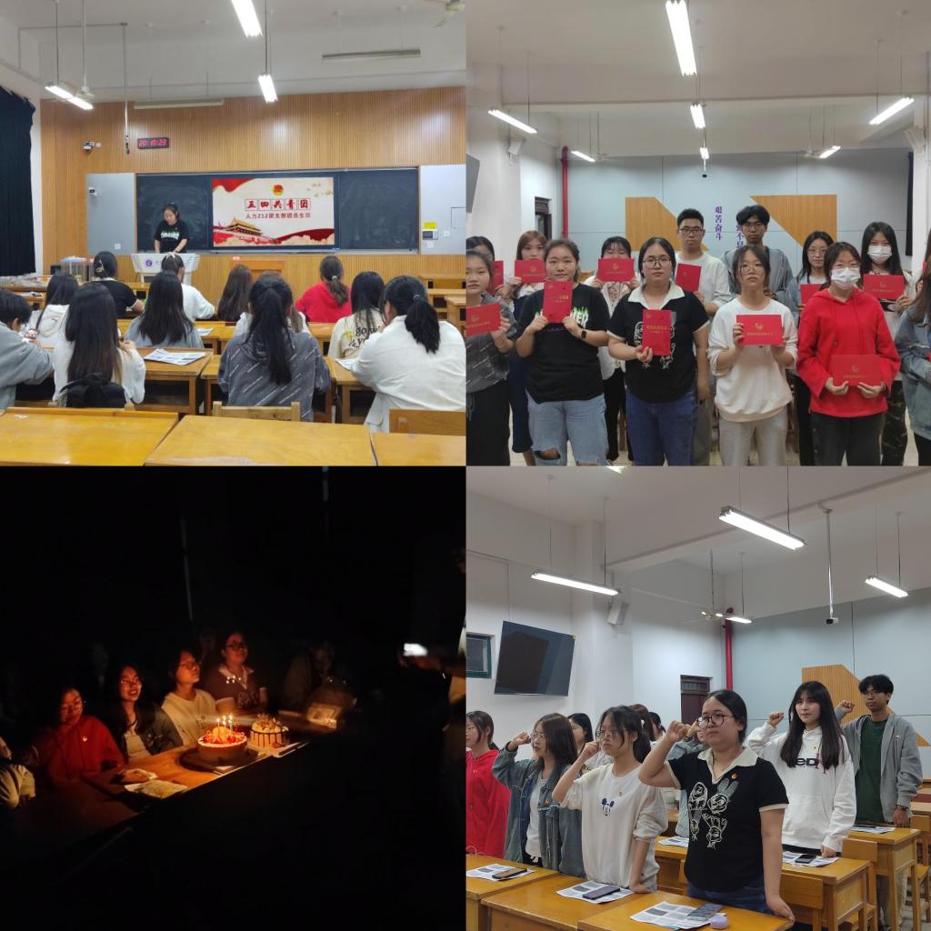 此次活动分七个部分展开:团员政治生日主题介绍、宣讲共青团历史、重温入团誓词、齐唱团歌、颁发团员政治生日卡、优秀共青团员演讲以及团员共贺生日。活动伊始,团支部副书记王号从中国共产主义青年团简介、共青团成立的历史、团员的权利义务等六个方面向同学们展开宣讲。随后,团支书周姊洋向全体团员介绍团员政治生日。“每个人都有两个生日,一个是出生日,一个是‘政治生日’。只要被团支部大会决议通过后,同学们就有了新的政治面貌——共青团员,团员的政治生命也随之开启,也就拥有了自己的政治生日。”周姊洋向团员们颁发团员政治生日纪念卡,学院优秀共青团员陈林霞向全体团员做演讲。最后,全体团员面对团旗庄严宣誓,一时间,入团誓词字字句句响彻在整个教室中,团员们更是在共唱团歌环节中重温了当时的入团初心。