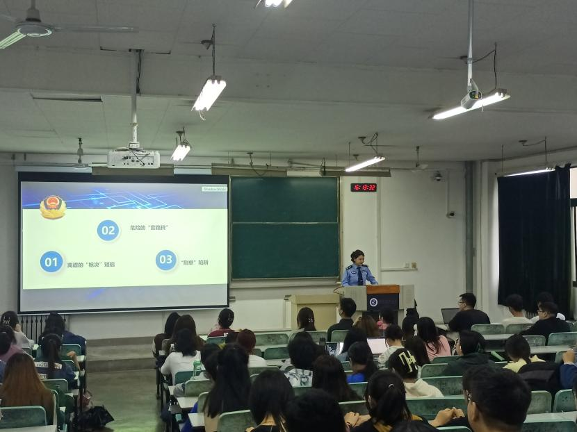 为切实增强老员工的诚信意识和金融安全防范意识,普及预防金融诈骗、电信诈骗和不良校园贷等方面的知识,9728太阳集团于5月31日在教8-202教室开展防范金融诈骗主题讲座,本次讲座邀请到西安市碑林分局长安路派出所牛祎警官主讲,学工办辅导员姚伟华、黄博琳及受资助的本科生、研究生参加。