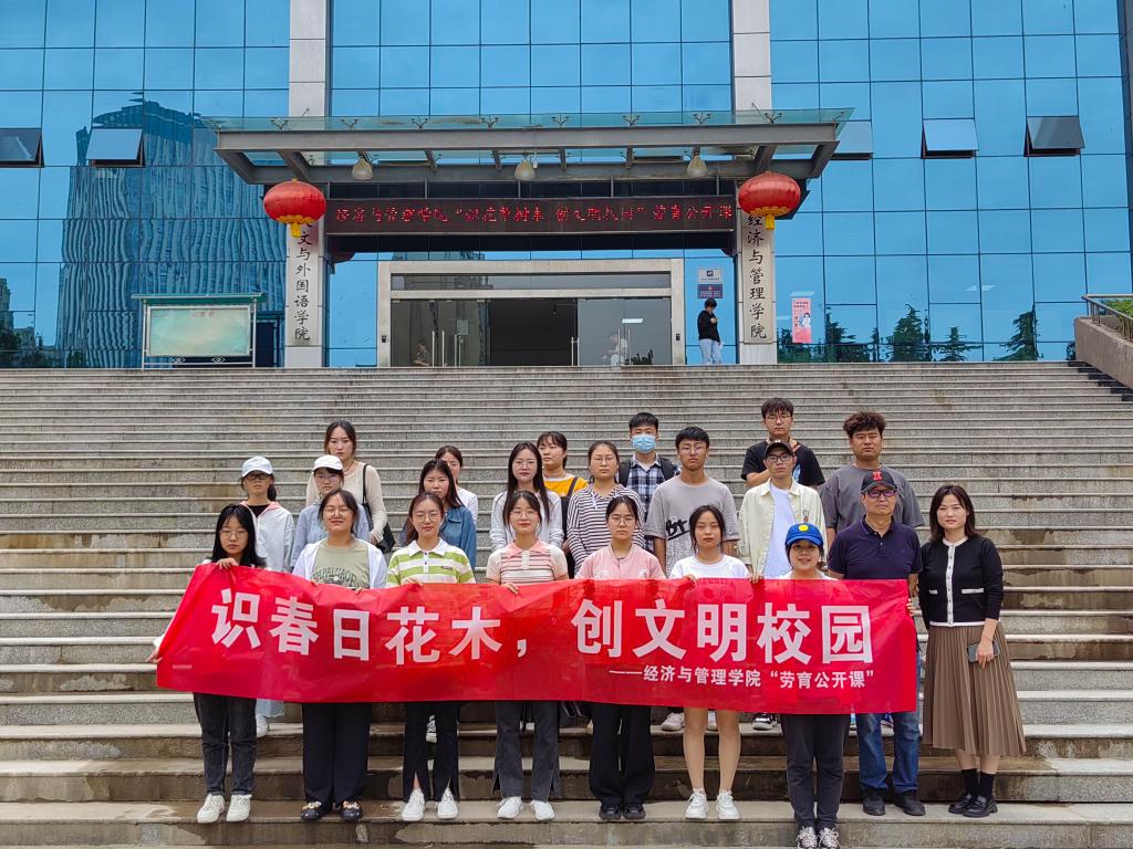 四季草木,沁润人心。在读万卷书的同时,也应当行万里路。活动最后,管222班韩奇玲同学表示,通过这次识别花木的劳动教育实践课,更进一步增进了对校园花草树木的了解,在探寻植物奥秘的过程中了解了校园的古今变化。闫如玉鼓励同学们多多关注和发现生活中的美,感受自然界生命的蓬勃活力,并表示学院将继续开展为校园花草树木挂牌活动,希望大家踊跃参与。此次活动旨在落实学校“五育并举“的教育方针和立德树人的根本任务,教育引导老员工树立正确的劳动观,将劳动教育有机融入到员工第二课堂实践中,进一步推动了绿色校园和文明校园建设。