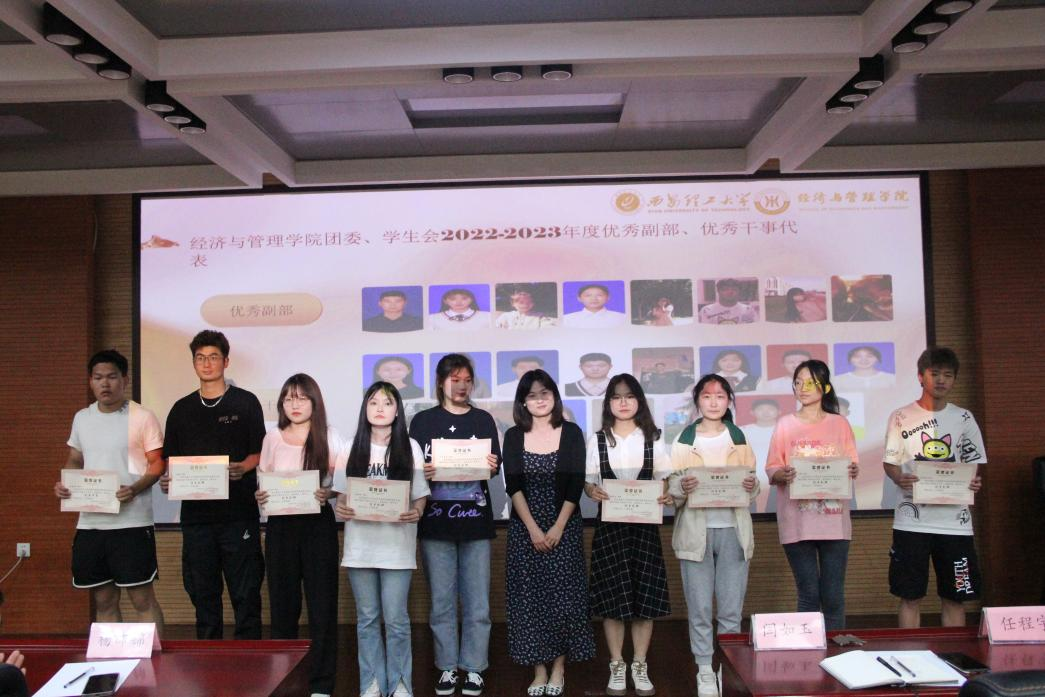 6月18日晚,学院团委在十一号楼EMBA报告厅召开2022-2023学年团委、员工会表彰大会,院团委书记闫如玉,辅导员任程宇、蒋艾琳、杨沛锦、曹佩豪,员工会全体成员,德智体美劳获奖员工代表参会,表彰大会由金融222班周容庆主持。