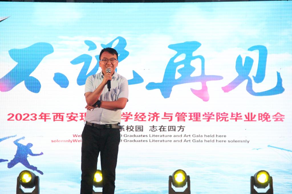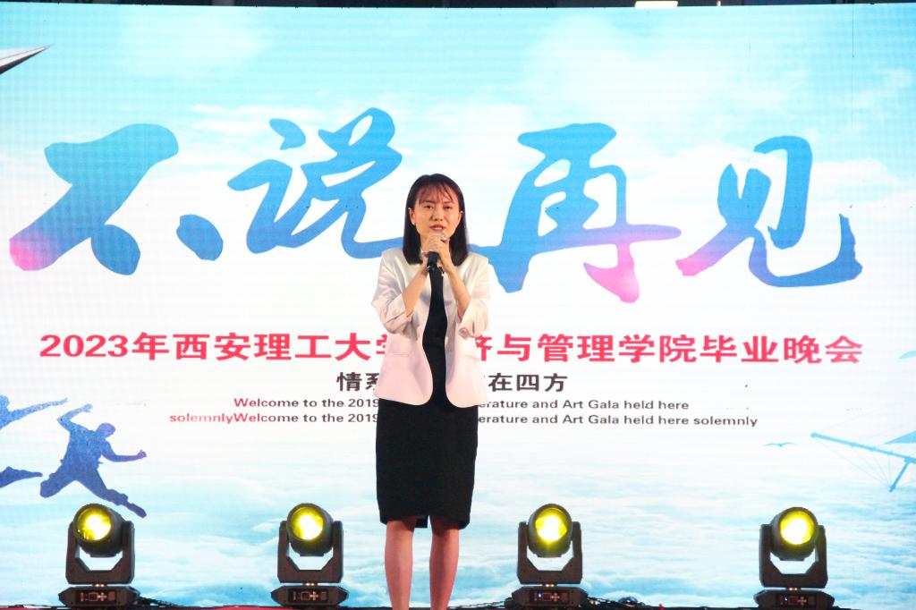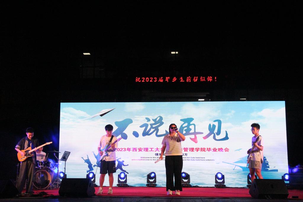 朱晓明在晚会上致辞,感谢所有2023届毕业生留给学院的美好回忆,同事她也祝福所有毕业生前程似锦。优秀员工代表分别致辞。王爽讲到西理给了她很多回忆和成长,现在的成就也离不开母校的培养;闫占伟也讲到曾以员工干部的身份参与很多同学的成长,祝福即将毕业的同学们披荆斩棘,扬帆起航。晚会由街舞串烧、情歌对唱、钢琴独奏、舞蹈、乐队表演等十二个节目组成。沈洋、巴怒带来的歌曲《玫瑰少年》唱出了我们都将是最好的自己!李柯霏带来的说唱《很久很久》让我们想起此间少年;毕业生带来的《那些年我们一起追过的女孩》、学弟胡泽廷唱的《晴天》、梦旅人乐队给大家带来了《想去海边》《魔法药水》《后来》、舞蹈《失眠飞行》《unforgiven》《hype boy》再次将现场氛围推向高潮。“云传鸿信诗传韵,水绕青山月绕天”,毕业班辅导员们也将心中不舍化为文字,高声朗诵给毕业生们。最后,现场所有师生一起合唱校歌《春华秋实》,四年的校园生活仍历历在目,毕业生们深情地倾诉着对母校和学院的眷恋不舍之情中落下了帷幕。