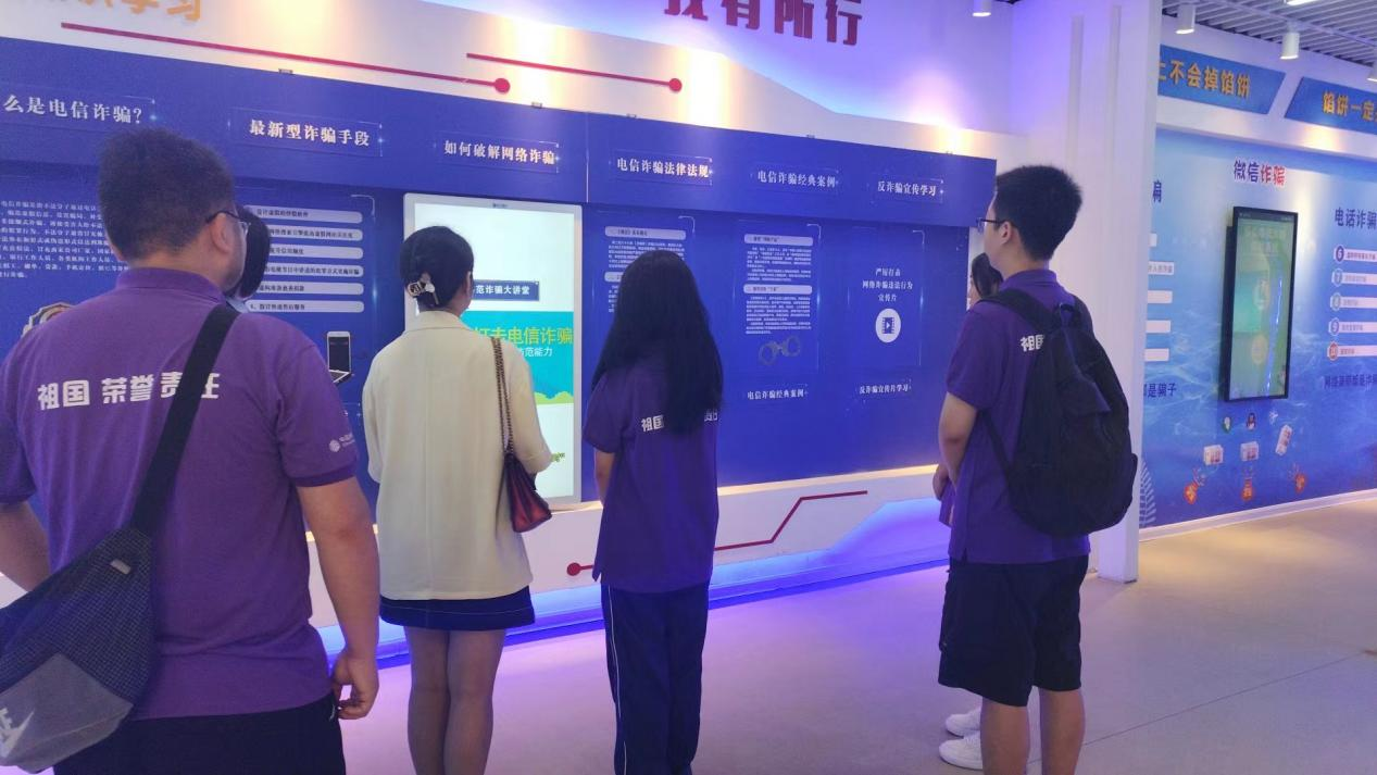 为切实配合中宣部、公安部联合启动的“全民反诈在行动”集中宣传月活动,进一步加大反诈宣传力度,不断提升师生防骗意识,持续营造全社会反诈浓厚氛围。7月4日,9728太阳集团“平安中国·反诈先锋”社会实践队赴公安高新分局反电诈宣教体验馆参观学习。