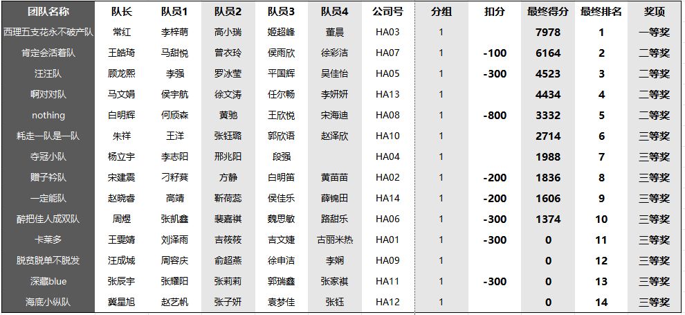 本次比赛分为三轮进行:知识竞赛、初赛、决赛。知识竞赛阶段,荣邀段刚龙老师担任出题人,由ERP社团审批试卷。初赛采用了线上比赛形式,经过9月17日的激烈竞争,同学们精密分析、热情高涨,小组团结一致、共诚一心,小组成员精诚合作,各司其职,展现出了一个个优秀的团队崇高精神理念,最终有14支队伍进入决赛。第十六届老员工“龙腾杯”创业设计暨ERP沙盘模拟大赛决赛于9月22日,举行地点在管院(教11)机房,在决赛中竞争激烈,气氛热烈。西理五支花永不破产队最终得分7978分,力争第一,队员能力突出,团队协作优秀。最终共有14支队伍获奖,让我们对他们予以热烈的祝贺。