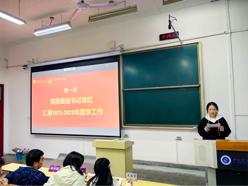 心有所信,方能行远。坚定理想信念是青年立身之本、立志之根。共青团要坚持青年为本,以德为先,服务为重,发展为主题的工作理念。此次例会指出了近期各团支部在工作中取得的成绩和存在的不足之处。接下来,学院团委将加强团支部建设,真正把每一个团支部建设成为教育青年的学校、团结青年的核心、攻坚克难的堡垒。