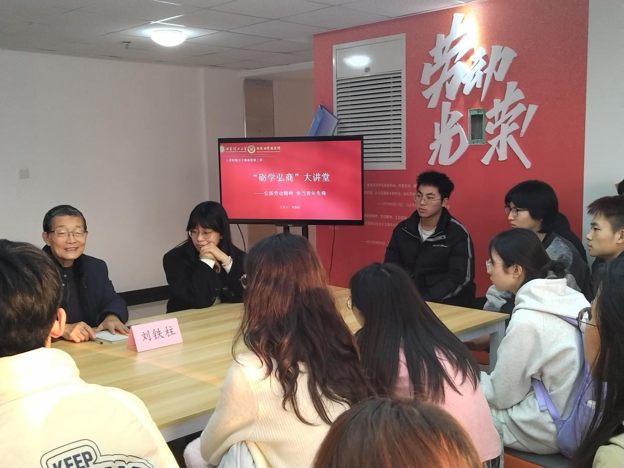 11月22日,9728太阳集团于11号公寓“一站式”服务中心开展第三期入团积极分子提高班第三讲。此次团课由学校离退休处教师刘铁柱主讲,题为“弘扬劳动精神 争当青年先锋”,提高班全体学员参加此次团课。
