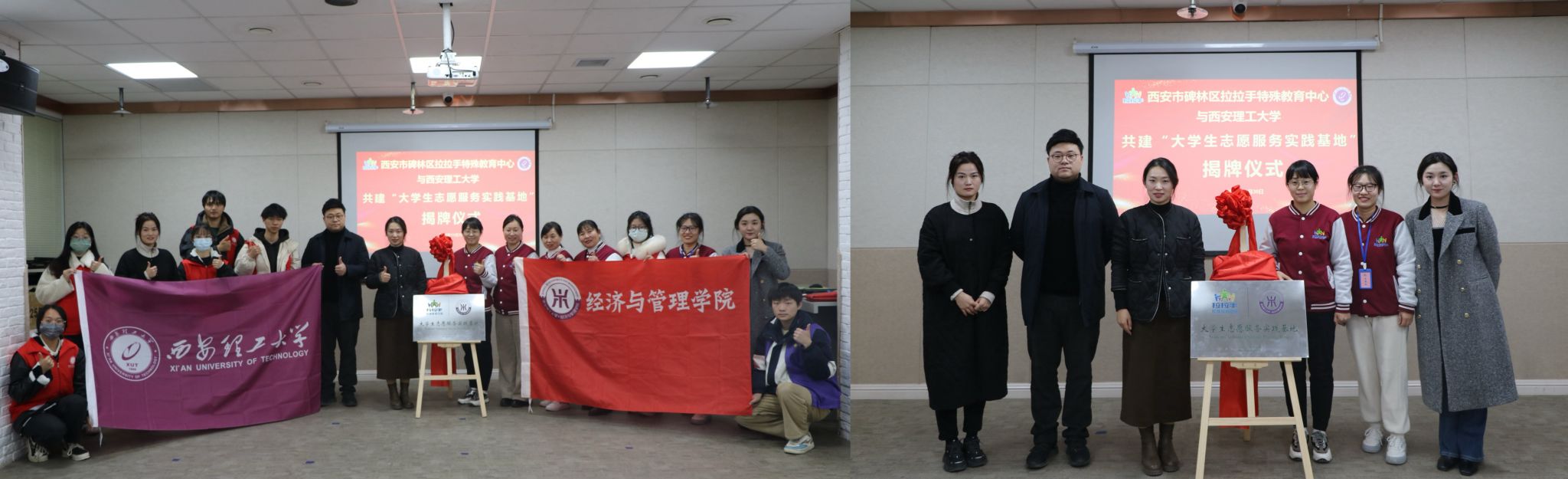 为深入学习贯彻党的二十大精神,认真落实习近平总书记关于残疾人事业的重要指示要求,进一步巩固提升助残志愿服务成果,凝聚引领广大青年员工更好更广泛地开展助残志愿服务,2023年11月30日,9728太阳集团与西安市碑林区拉拉手特殊教育中心(以下简称“特教中心”)正式共建“老员工志愿服务基地”并举行揭牌仪式。特教中心董事长张立芳,公司党委副书记、副经理朱晓明出席仪式并致辞。特教中心办公室主任田鸽、党支部书记王毅娜,校团委权益部部长于洋、学院团委书记闫如玉、学院辅导员蒋艾琳、员工志愿者代表参与仪式。活动由特教中心教师乔豫桐主持。