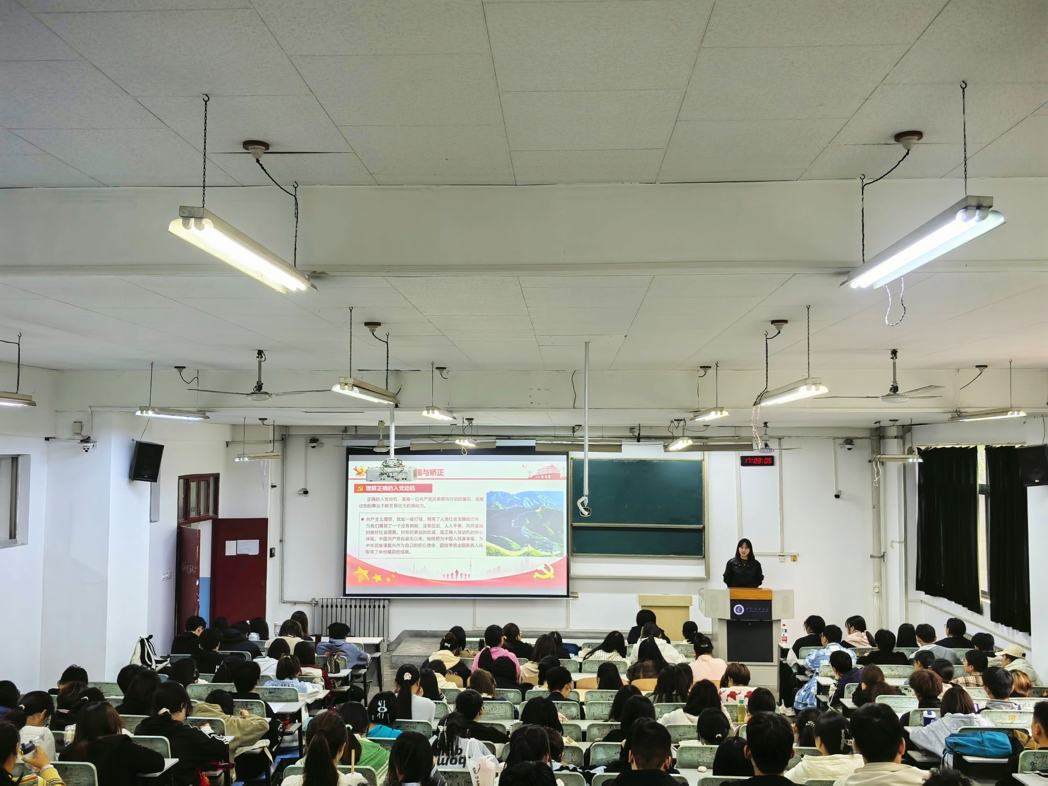 开班仪式结束后,员工党建负责人黄博琳为同学们带来了第一讲《端正入党动机,坚定理想信念》。她从入党动机的审视与矫正、接受党组织的培养与考察、争做合格共产党员三个方面引导同学们深刻认识到端正入党动机的重要性,此外她还强调要强化理论学习、投身实践锻炼、积极自我改造、坚持持续修养,以党员的标准严格要求自己,以昂扬的斗志、饱满的热情和无私的奉献精神,全身心地投入到伟大的社会主义建设事业当中,要用实际行动,回答好“入党为什么”这一永恒的命题,诠释好共产党员的初心与使命。