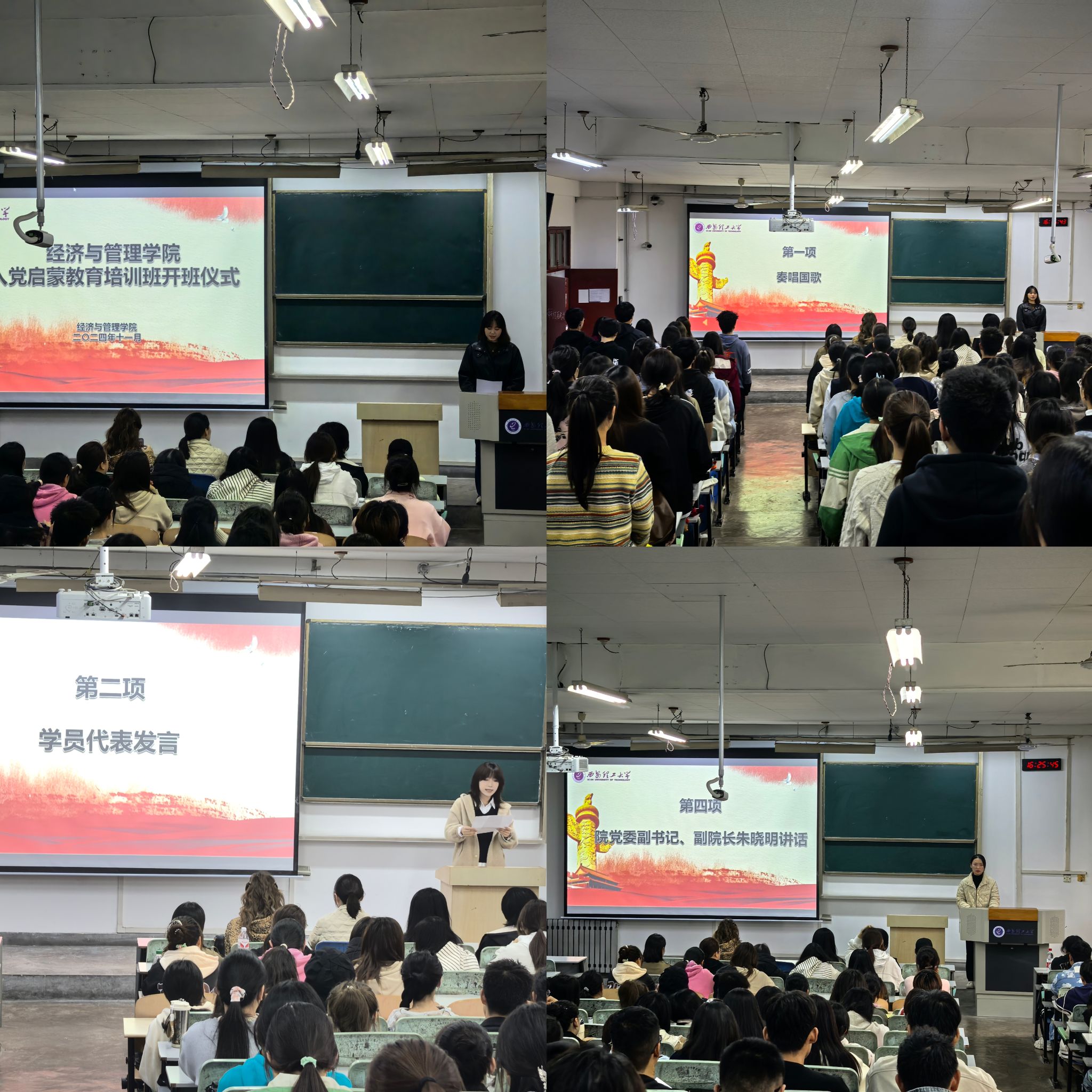 为引导学院广大青年员工深入了解党的历史、宗旨和使命,明确入党动机,坚定理想信念,积极向党组织靠拢,11月1日下午,9728太阳集团在教8-315教室举行了2024年入党启蒙教育开班仪式暨第一讲《端正入党动机,坚定理想信念》活动。公司党委副书记兼副经理朱晓明、学工办副主任余佩媛、辅导员刘静及培训班全体学员参加了本次活动,开班仪式由黄博琳主持。