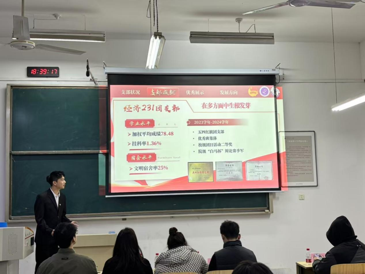 评选会分四个会场同时进行。会前,院团委书记闫如玉对2024年基层团组织建设工作进行了全面的回顾和总结。评选环节,各团支部结合自身专业特点进行活动展示,分别从“三会两制一课”的开展、入团积极分子培养和发展、聚焦需求服务青年等方面进行详细汇报,并就班团一体化背景下,团员青年生涯发展需求、心理健康状态、宿舍卫生环境进行重点汇报。各分会场评委对各团支部进行逐一点评,并就本年级支部建设情况进行总结,提出改进意见。