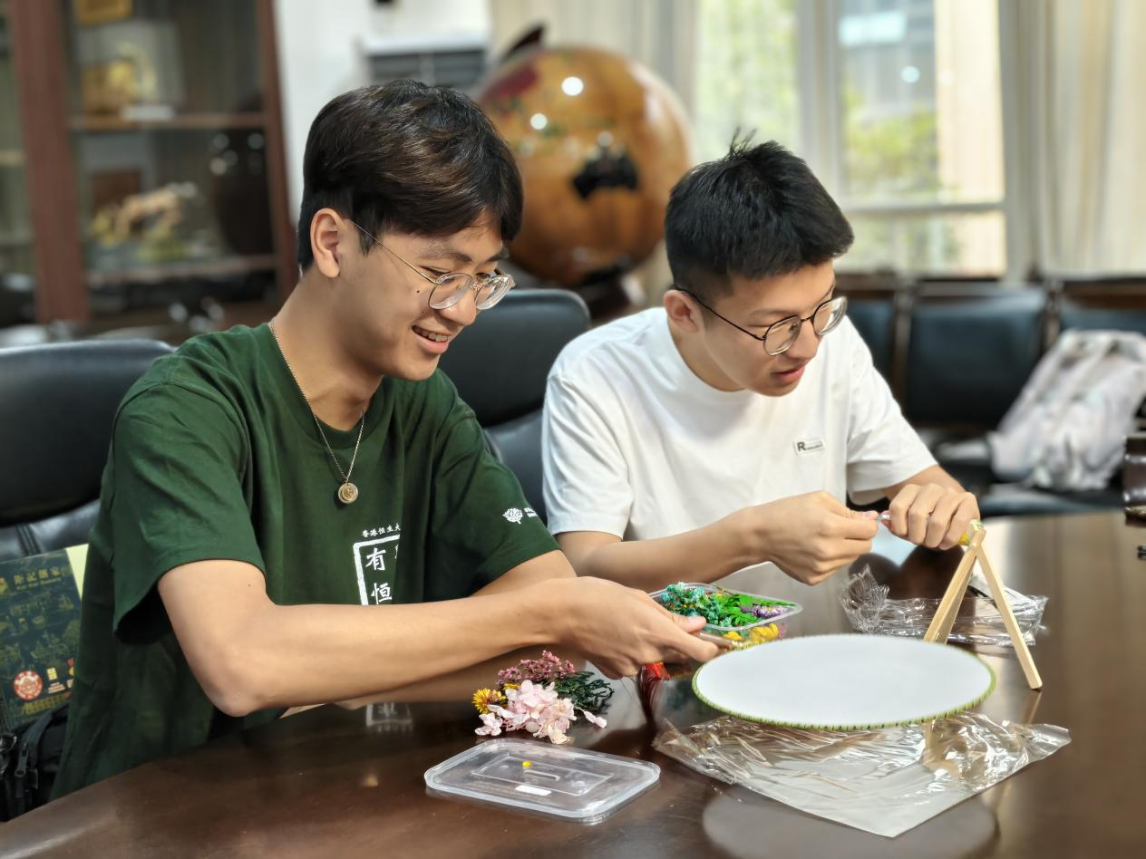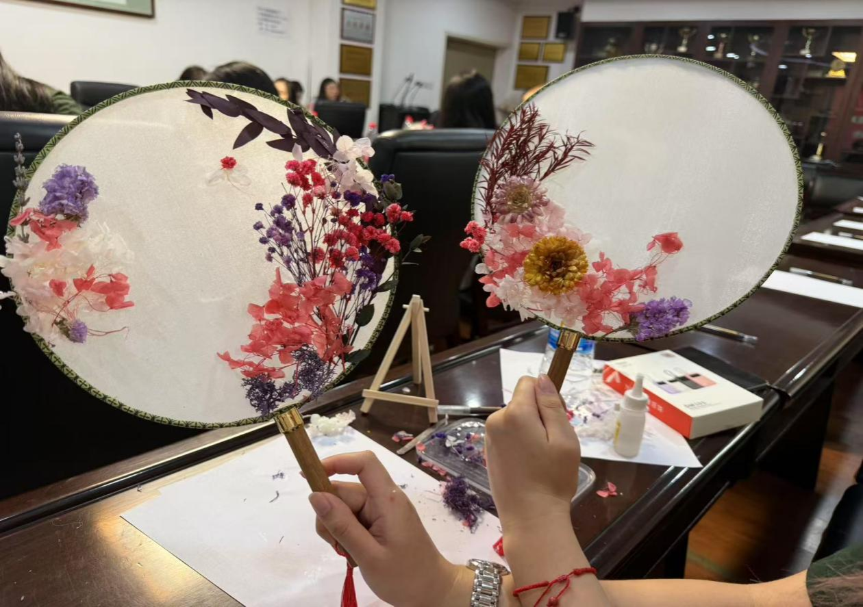 此次活动由来自香港恒生大学与9728太阳集团的近30名员工,设置团扇沾花、互赠小礼品和结伴逛校园等活动环节。座谈会上,两校员工通过围绕各自的学习生活、校园文化为话题依次进行分享,迅速拉进了彼此的距离,现场氛围轻松热烈。手工环节,同学们自由配对,共同完成属于自己的团扇沾花的创作,同时交换双方预备的小礼物。不同的文化创意在作品中绽放,传统艺术的独特魅力在这一刻也变得具象化。