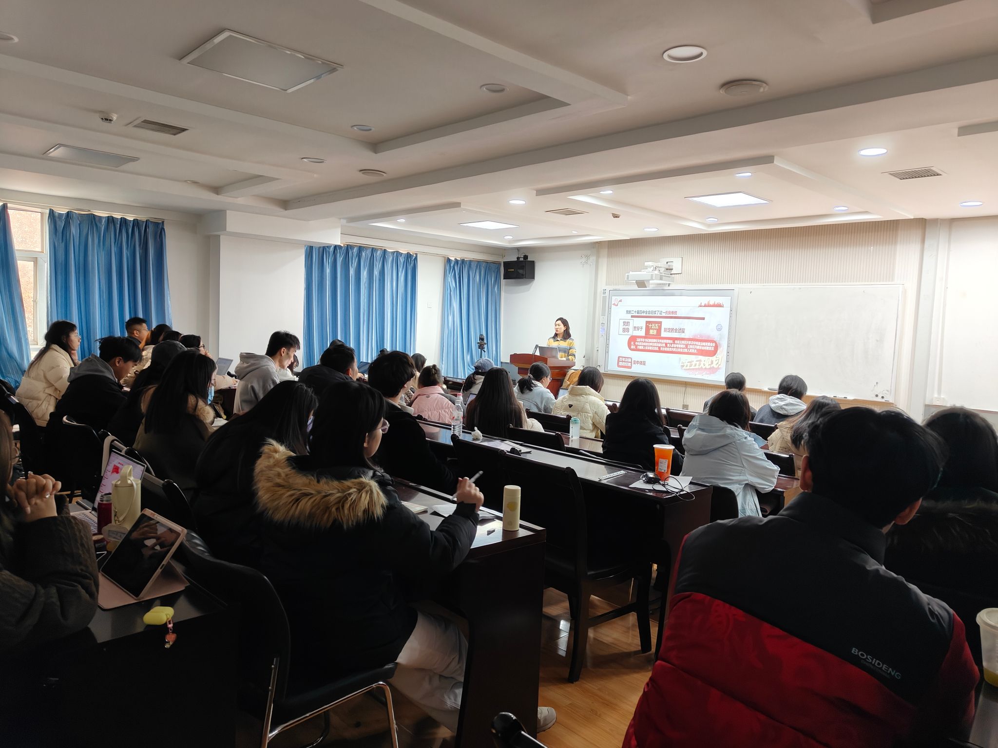 本次党课以“学习贯彻党的二十届四中全会精神”为主题展开系统讲解。黑晓卉老师首先点明“十五五”时期是我国应对全球变局的战略突围期与承前启后的战略决胜期,引导学员把握时代方位。其次从“为什么、是什么、怎么做”三个维度深入阐释:在“为什么”层面,明确学习是开启现代化新征程、统一全党步调、推进党的自我革命的三重时代需要;在“是什么”层面,回顾了党在新民主主义革命、社会主义革命和建设、改革开放和现代化建设、新时代中国特色社会主义四个阶段的伟大历史成就;在“怎么做”层面,从科学社会主义原则、中国特色社会主义实践、当代中国历史任务三个角度,强调坚持党的领导核心是事业发展的根本保证。授课过程中,黑晓卉老师以清晰的逻辑、生动的阐释,帮助同学们深化了对党的理论与历史的理解。同学们纷纷表示,将以此次学习为契机,持续深化理论武装,将学习成效转化为实际行动,以更饱满的状态向党组织靠拢。