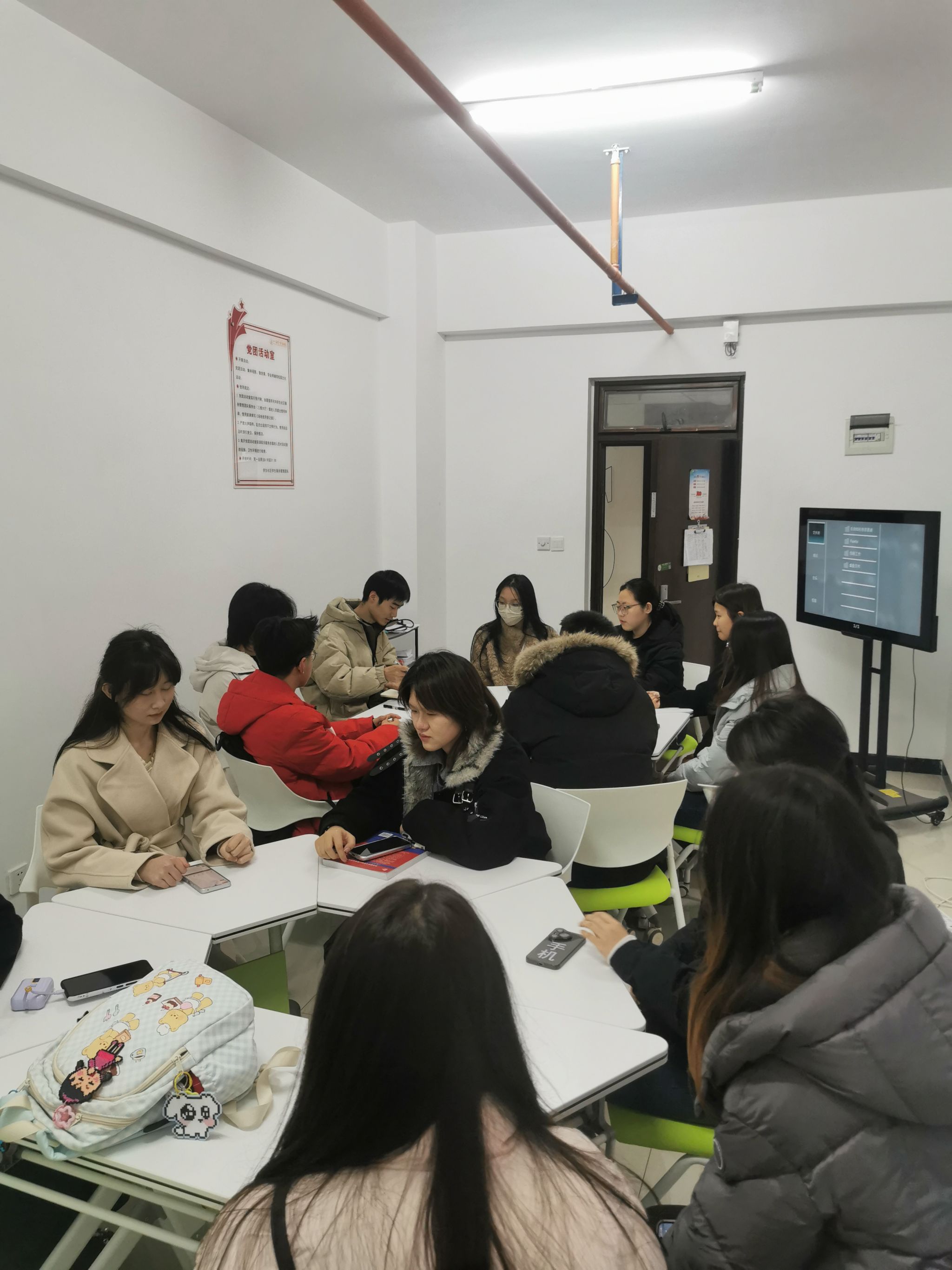辅导员结合学习体会作现场分享,带领大家重温梁家河精神内涵,勉励同学们以习近平总书记青年时期为榜样,珍惜大学时光,深耕专业知识,提升综合素养,把个人理想融入国家发展。同时,辅导员就班级纪律、校园安全、员工情绪疏导等重点工作作出强调,引导大家以健康向上的心态、严谨自律的作风投入学习生活。