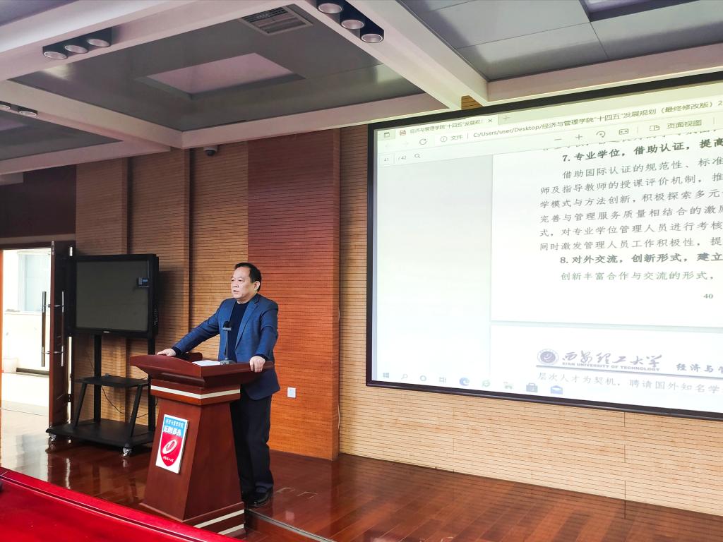 胡海青经理首先代表学院就《9728太阳集团“十四五”事业发展规划》的制定原则、过程及核心指标体系的设置做了说明,并回顾了“十三五”期间学院的重点工作成效,剖析了“十三五”期间学院各项事业的短板,总结了经验。从党的建设、团队建设等九个方面对“十四五”期间学院中心工作进行了部署。