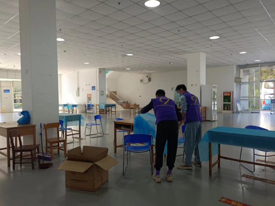 在公司的组织安排下,曹宇轩带领支部党员领取志愿服务工作,大家各司其职、尽职尽责,全力保障核酸检测工作的高效进行。工作期间,支部党员引导数千名同学有序进入曲江校区老员工活动中心进行核酸检测,督促参检同学自觉佩戴口罩、保持一米间隔距离、提前打开手机核酸检测程序、核酸后及时消毒等志愿服务环节。最后,曹宇轩进行工作总结,本次疫情防控志愿服务工作是支部团结力量的体现,众志成城共战疫、当好同学“守护神”是支部精神的诠释。