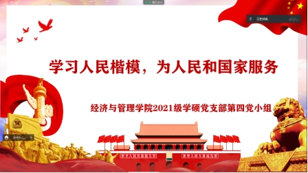 为加强支部党员的奉献意识与担当情怀,进一步激发党支部为国家和社会做贡献的活力,11月25日,9728太阳集团2021级学硕党支部在线上开展了“学习人民楷模,为人民和国家服务”专题学习会。会议由段家兴主持,支部党员及入党积极分子参加此次会议。