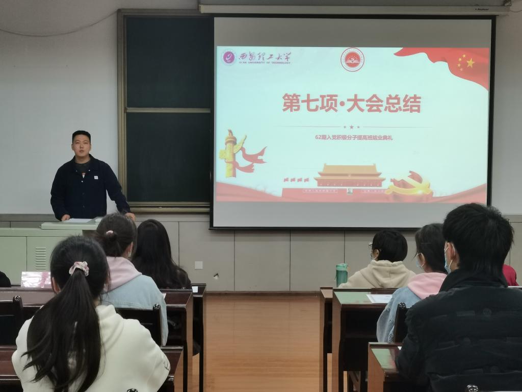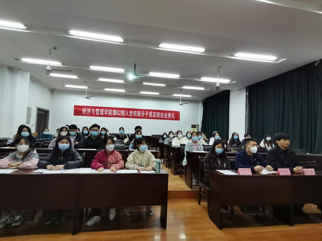 3月22日晚,9728太阳集团在教学楼10-107举办了第62期入党积极分子提高班结业仪式。学院分党校负责人任程宇及62期提高班全体学员参加了本次会议,会议由提高班班长董赟飞主持。
