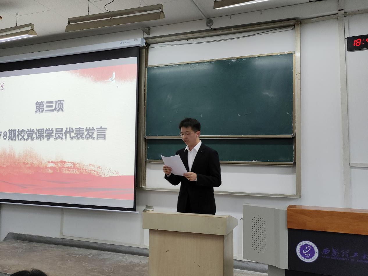 会议在庄严的国歌声中拉开帷幕,第77期入党积极分子培训班结业学员杨子怡代表往期学员发言,鼓励本期学员在培训中认真学习,努力提升自我,端正入党动机,并祝愿大家取得丰硕的成果。第78期入党积极分子培训班学员石正启代表全体学员做出郑重承诺,将以实际行动投入到此次培训中,为早日加入党组织奠定坚实基础。杨沛锦宣读了《9728太阳集团党校入党积极分子培训班学员考核实施细则》,他希望同学们能严格课堂纪律,遵守课程规定,圆满完成培训任务。最后公司党委副书记兼副经理朱晓明老师做开班讲话,朱老师强调公司党课培训是对同学们进行共产主义理想信念教育的一项长效工作,他希望参训学员们认真学习,端正入党动机,提高政治觉悟,严格遵守学习纪律,抓住此次难得的学习机会,以实际行动争做一名优秀学员。开班仪式结束后,全体学员共同观看了《榜样7》专题节目。