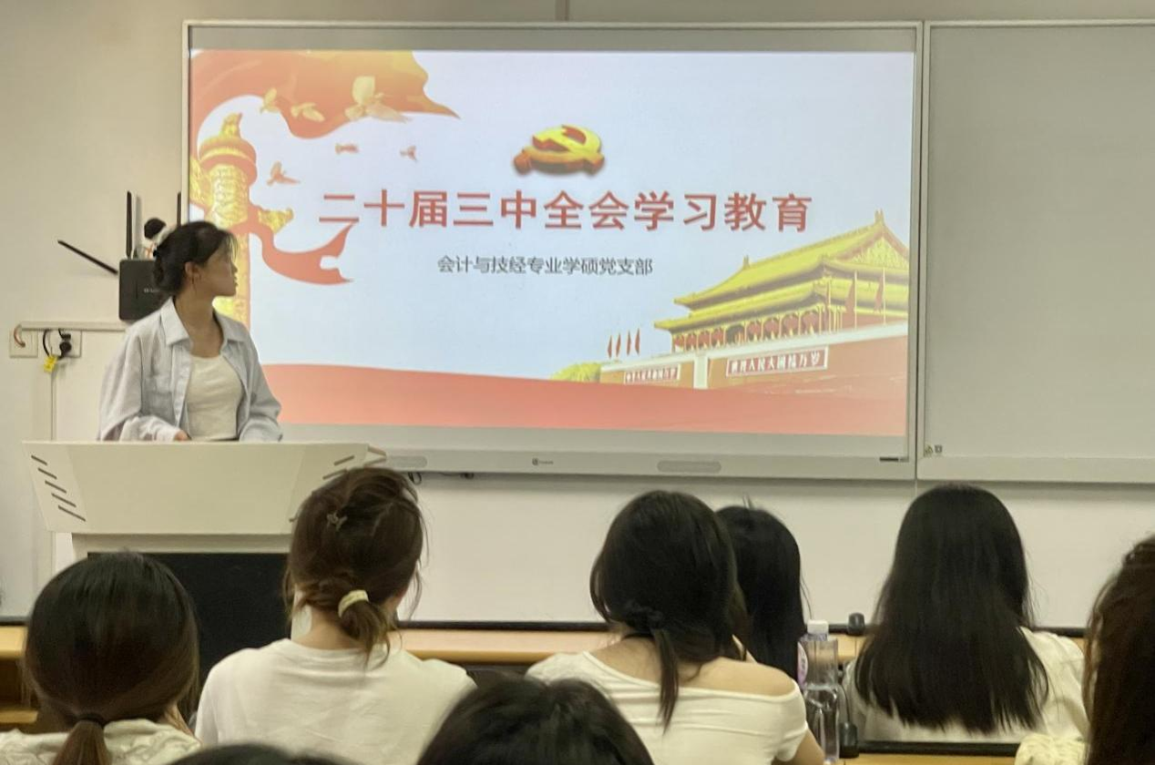 为深入学习贯彻党的二十届三中全会精神,认真学习贯彻《中共中央关于进一步全面深化改革、推进中国式现代化的决定》,9月10日,9728太阳集团会计与技经党支部开展了学习贯彻落实党的二十届三中全会精神的主题活动。全体党员、部分积极分子参加此次学习,会议由支部书记李茹茹主持。