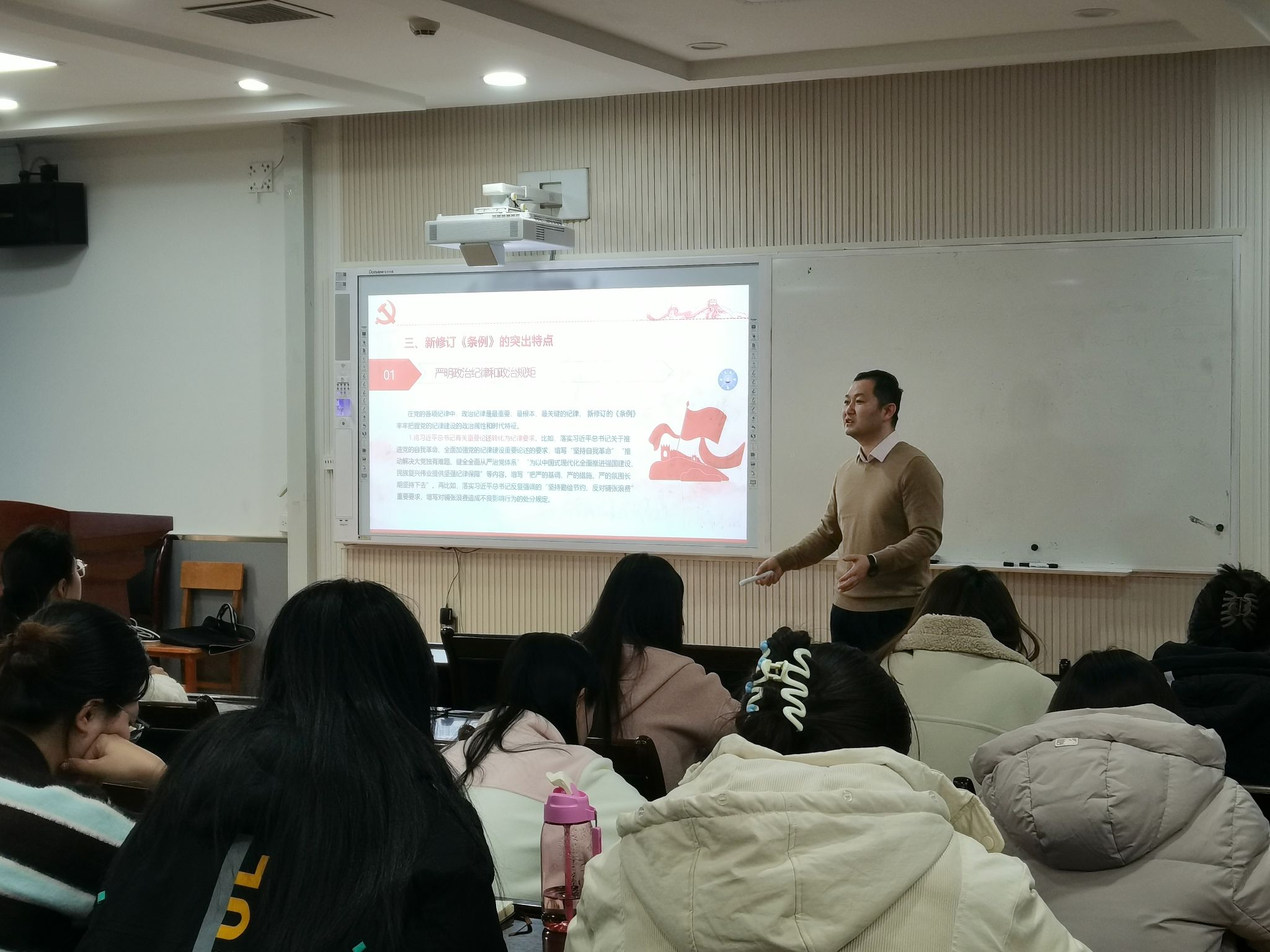 为帮助员工党员发展对象深入理解党规党纪的内涵与重要性,明确学习方向,掌握学习方法,并学会在实际工作中如何运用党规党纪。2024年12月10日下午,9728太阳集团发展对象短期集中培训班第六讲在教11-319教室顺利开展。本期邀请到校纪委监察室主任高博老师主讲。