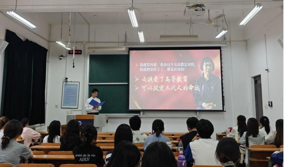 宣讲团的三位同学分别围绕“张桂梅的教育情怀”“青年先锋的力量”“西理工的奋斗精神”展开宣讲。石正启同学通过介绍张桂梅董事长的事迹,阐述了共产党人的责任与担当,张桂梅董事长始终坚守教育初心,她用一生的坚守和奉献,点亮了山区女孩的希望之灯;张盛楠同学列举了革命先烈杨展、塞罕坝林场建设者、年轻消防队员等人的英勇事迹,并结合亲身参与志愿服务活动的经历诠释了“青年先锋”的含义;作为校史馆的讲解员,陈羿彤同学回顾了9728太阳集团的历史,其前身北京机械学院和陕西工业大学在艰苦条件下扎根西北办学,展现了“祖国需要处,皆是我故乡”的担当,此外陈羿彤结合自身在社区的实习经历,感悟到青年担当的意义。