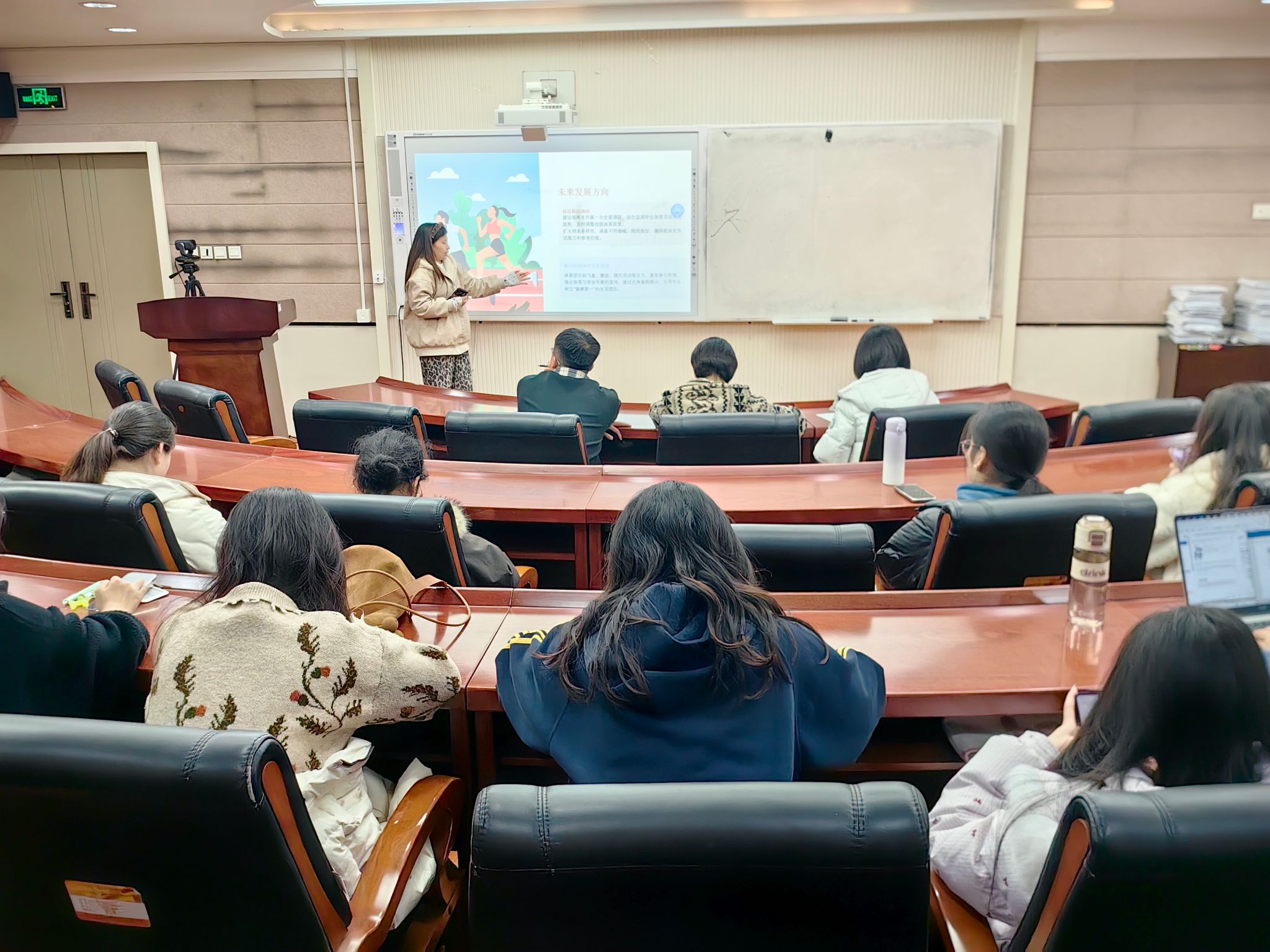 在主题调研汇报环节,各小组立足时代需求与青年视角,聚焦红色教育与社会服务重点领域深耕细研。部分小组以“党史学习”为核心主题,深入挖掘党史中的精神密码,探讨新时代青年传承红色基因的路径方法;另有小组聚焦老龄化社会背景下的民生痛点,开展“老员工志愿者助推老年数字融入的实践逻辑研究”,通过问卷调研、实地访谈、手把手教学等实践形式,系统分析老年群体数字融入的难点堵点,为优化老员工志愿服务助力老年数字赋能提供了有益思路。志愿服务类汇报则充满温情与担当,各小组深入不同服务场景,用实际行动践行奉献精神。其中,部分小组走进交大附属二院家属区,为老年居民提供健康咨询、情感陪伴等服务;有的小组前往拉拉手特教中心,通过趣味游戏、知识讲解、手工制作等形式,陪伴特殊儿童成长,用爱心传递温暖;还有小组走进八路军办事处,开展史料整理、讲解辅助等志愿工作,在服务中深化对革命历史的认知;另有小组前往浐灞湿地公园,开展生态环保宣传、垃圾清理、绿植养护等活动,以实际行动践行绿色发展理念,助力生态文明建设。