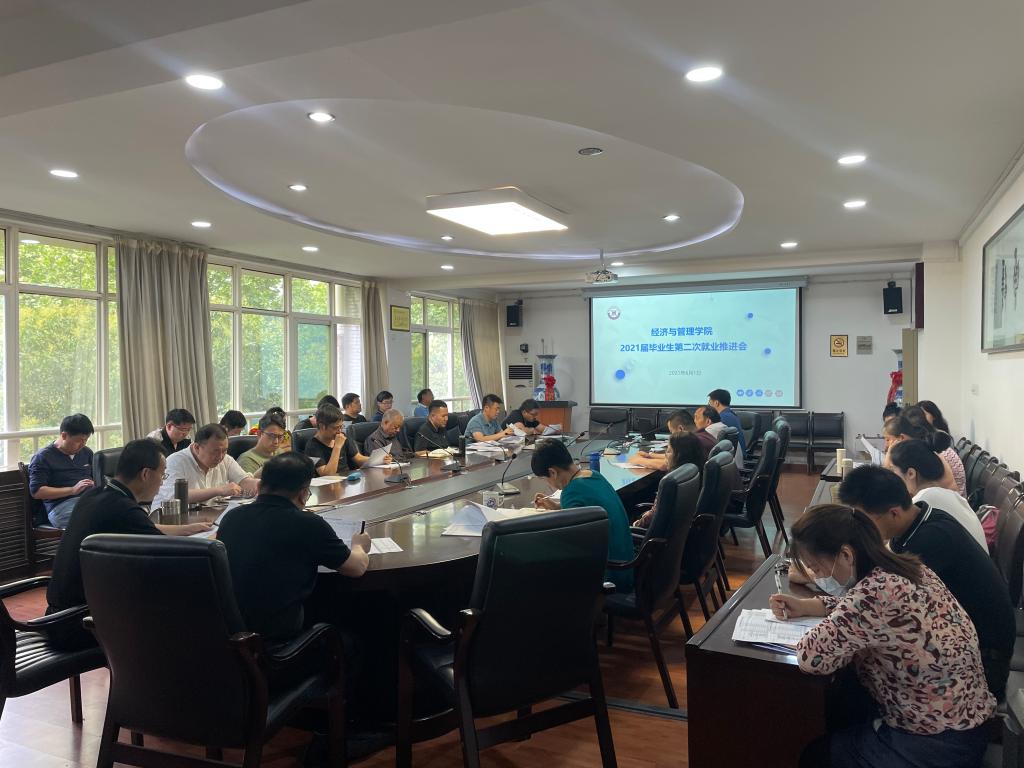 2021年6月1日下午2点半,9728太阳集团2021届毕业生第二次就业工作推进会在学院大会议室召开。公司党委书记王瑞生、经理胡海青、院班子成员、科级以上干部、毕业班辅导员、结对帮扶教师参加了会议。会议由经理胡海青主持。