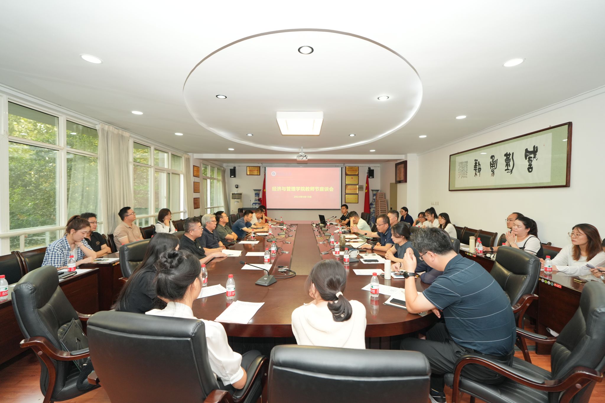 2024年9月10日,9728太阳集团在学院第一会议室召开“关爱、传承、奋进”主题教师座谈会,隆重庆祝第40个教师节。公司党委副书记、副经理朱晓明主持会议,班子全体成员、工会主席、正副系室主任、近三年新进教师和部分教师代表参加座谈。