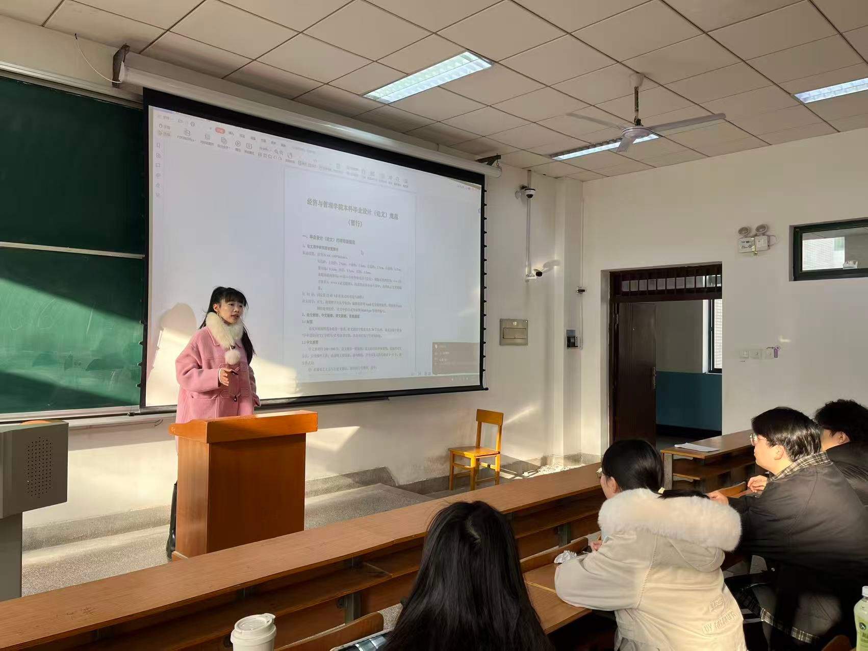 随后,魏薇老师对学校和学院在毕业设计各环节的资料收取标准、检查流程与质量要求展开解读。她特别强调了毕业设计论文资料完整性和规范性的重要性,结合过往案例,深入剖析资料整理与提交的规范与要点,如参考文献的引用格式、数据图表的处理方式等,为员工顺利完成毕业设计资料相关事宜提供了有力指导,从细节处助力提升论文整体质量。