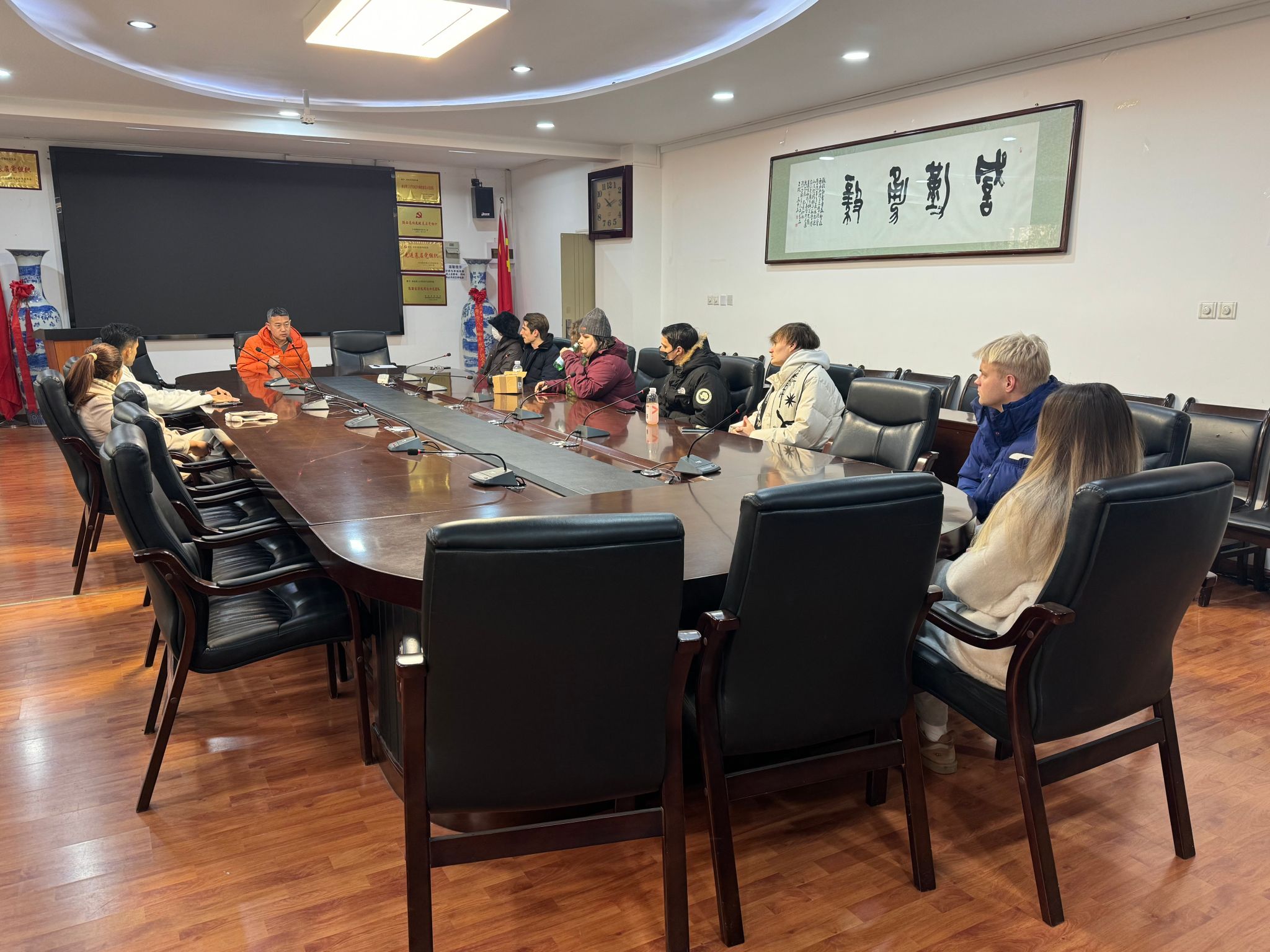 赵璟副经理细致地询问大家的学习进展和生活情况,结合即将到来的中国传统节日 “春节”,赵璟副经理简单介绍了春节的核心习俗,讲解了节日背后的文化内涵与美好寓意,鼓励同学们充分利用课余时间,主动参与各类文化体验活动,沉浸式感受中国传统文化的独特魅力,进一步增进对中国的了解与认同。