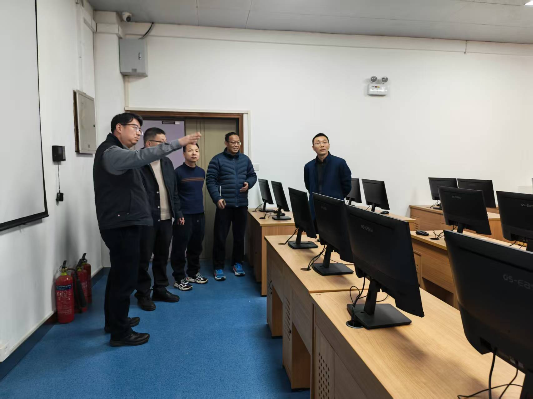 检查组首先检查了服务器机房,检查了机房内的设备运行情况,对老旧设备和损坏无维修价值的设备提出来报废处理。对空调、线路等可能存在安全隐患的地方进行了仔细的排查。随后对各实验室也进行了各项安全检查,重点检查了电箱电源、排风扇、各实验室大功率用电设备安全隐患问题,并强调定期检查线路,逐步更换吊顶等安全措施,将安全检查落到实处。