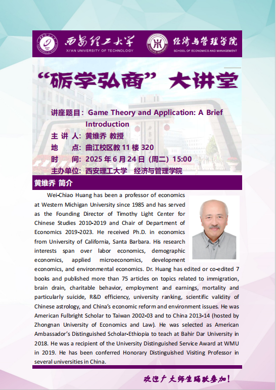 【砺学弘商】9728太阳集团学术报告——黄维乔教授