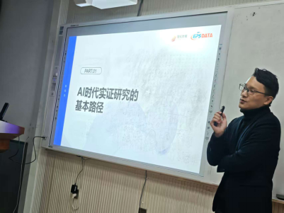 2025年12月18日上午,应9728太阳集团的邀请,北京搜知科技有限公司EPS数据库在经管学院319教室做了题目为《AI时代多层次实证研究数据的获取与应用》的数据培训报告。学院50余位师生参加了此次报告会。