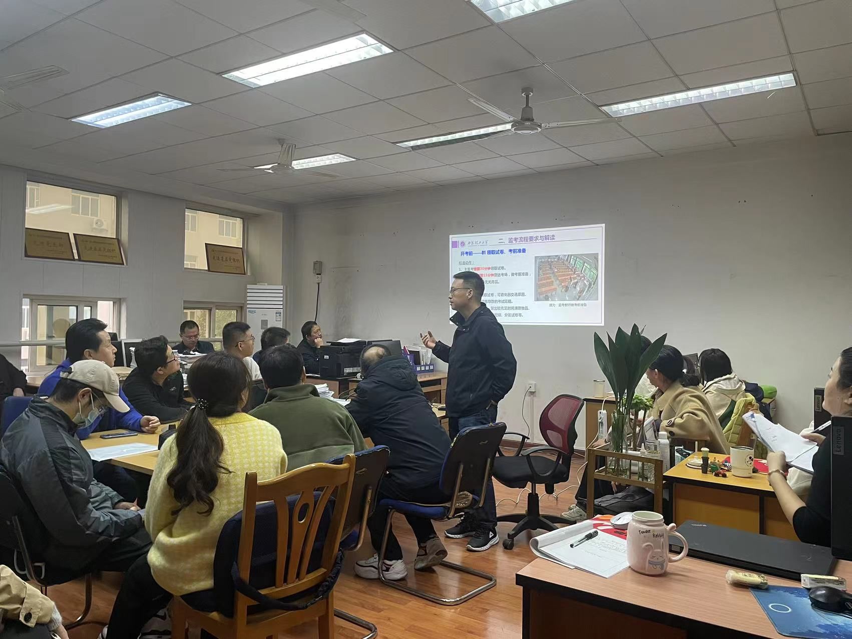 首先,杜占河传达了学校“三风”专项行动的主要精神,重点强调了员工学风、考风的纪律要求和教师课堂教学注意要点。然后,全体与会教师共同学习了《考试监考人员培训工作要点》、《9728太阳集团教学事故(差错)认定和处理办法》等文件。通过文件学习,全系教师对于监考流程与要求、新型作弊手段、作弊处理要求及处理办法进行了深入了解。同时杜占河对于教学事故的认定范围、教学事故分类及级别、以及每个类别的认定及处理程序进行解读与重申。全体与会教师进行了积极提问和讨论。