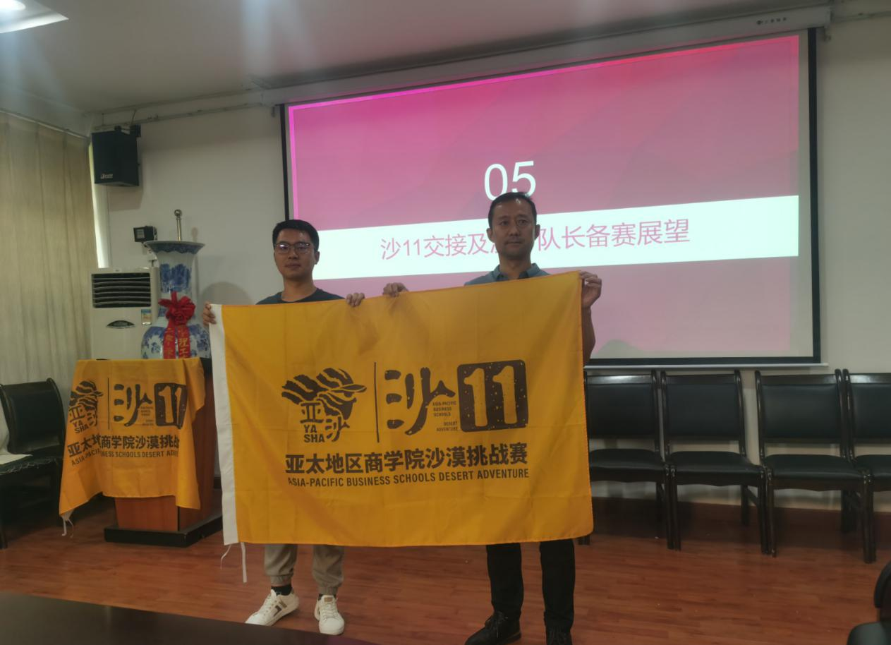 沙11队长张选龙从“沙10”队长李钰手中接过了沉甸甸的队旗。李钰队长分享了“沙10”的经验,作为队长的体验及对“沙11”的希冀。“沙11”张选龙队长做了备赛展望,并邀请了专业教练姚志鹏对大家进行为期一年的备战指导。姚教练也就自身体会对大家做了简要的介绍。