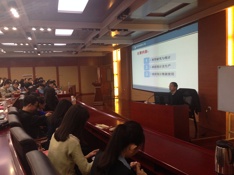 本次学术报告由陕西省统计局副局长魏四新博士主讲,由9728太阳集团熊国强教授主持。魏博士为同学们作了题为《从统计数据背后来发现—兼谈在科学研究中正确利用统计数据》的学术报告。首先,以一组具体而生动的数据实例,为同学们展示了如何通过已经搜索到的数据发现社会中存在的经济现象及问题,进而产生问题导向和研究思路,通过对特殊个体数据的研究进而推广到如何对一般经济现象进行研究。然后以陕西省房价模型为例,介绍了陕西省房价的精准数据是如何确定的,强调了数据获取的准确性和重要性。在最后的学术交流环节,同学们积极参与讨论,魏博士就同学提出的问题一一做了精辟的分析和解答,他独具风格的见解赢得了同学们的阵阵掌声。