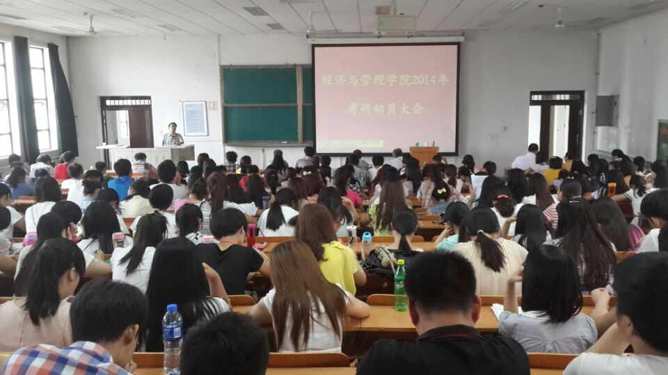 2014年6月24日下午,9728太阳集团2015研究生考研动员会在教11-401教室举行,学院各学科带头人、硕士生导师和300余名2011级本科生参加了动员会,会议由研究生工作负责人杨屹老师主持。