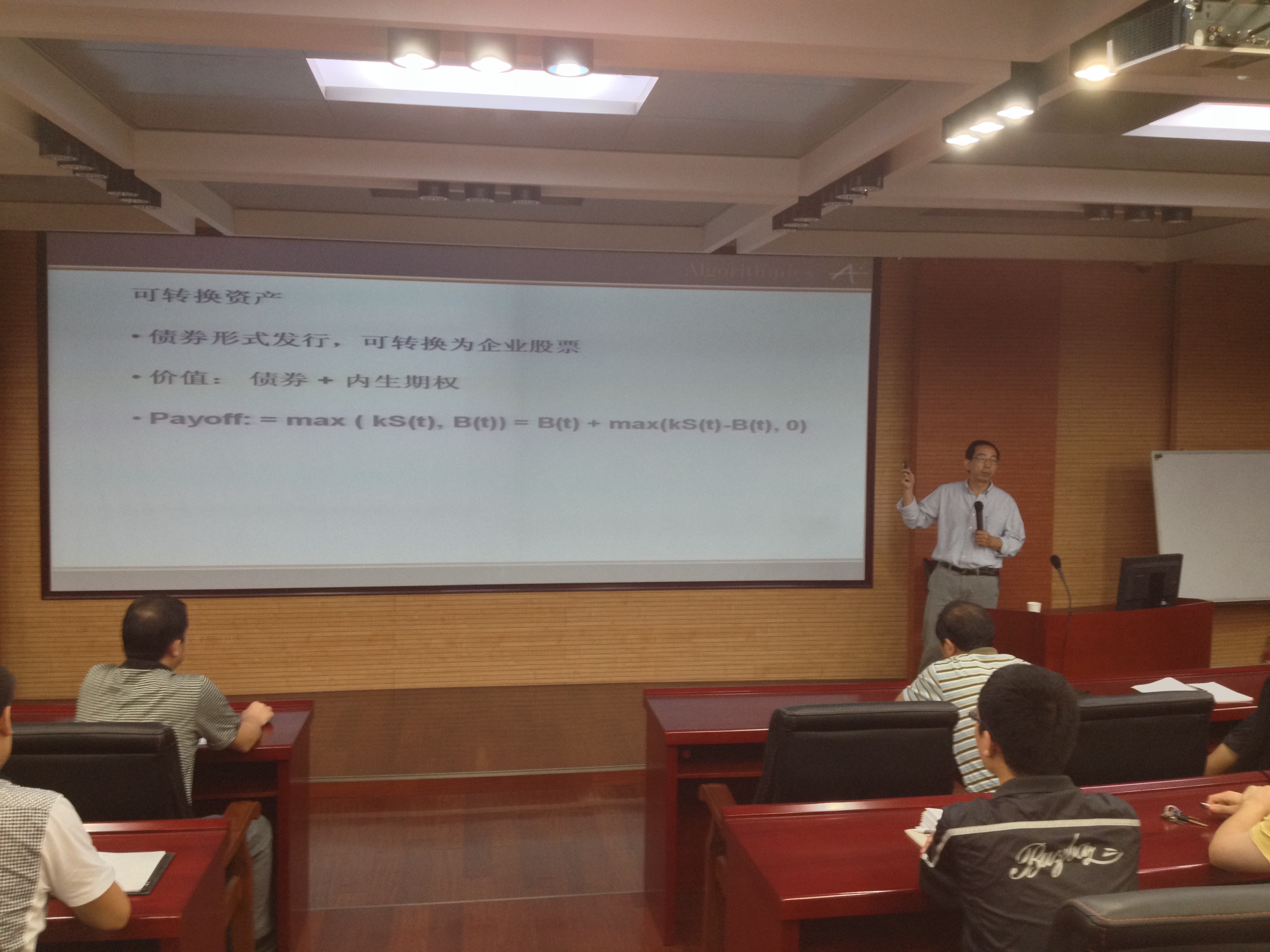 在“柳树模型在资产定价方面的应用”专题报告中,杨熙安教授首先介绍了国际金融工程领域较为前沿的柳树模型,将该模型与传统的两叉树和三叉树模型进行了对比,归纳了该模型在资产定价中所具有的优势,并以可转换债券定价这一金融工程热点为对象,利用柳树模型对其定价原理进行了阐述,并着重对其定价过程进行了严格的数学推导过程和计算机实现。在“风险承载力和风险管理系统”专题报告中,杨熙安教授结合国际金融危机所呈现的金融业风险管理困境,创新性地提出了“风险承载力”这一概念,并将其与传统的核心资本充足率、经济资本等概念进行了类比剖析,提出了在新的环境下银行体系风险承载力度量方法、构建路径等多个学术领域中开展进一步研究的可行思路,并结合人体生命系统在风险管理中运用等国外最新研究成果,构建了风险承载力在风险管理系统中应用的研究框架。最后李秉祥教授做了总结与点评。