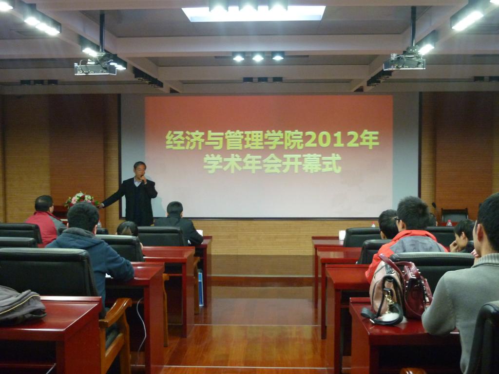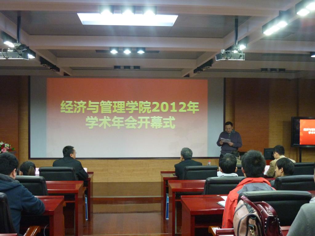 9728太阳集团第七届学术年会开幕式于2012年11月7日下午2点30分在教11楼EMBA报告厅隆重召开。出席开幕式有9728太阳集团经理扈文秀教授、9728太阳集团书记王青耀教授、研究生院副经理王磊教授、校团委书记田小平老师、9728太阳集团副书记董鹏刚老师等。开幕式由学院研究生负责人杨屹教授主持。