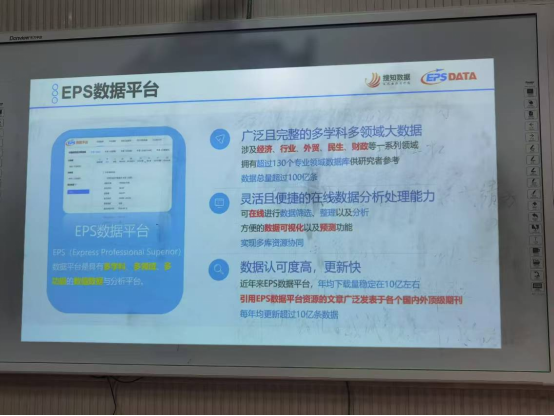 2025年4月24日上午,应9728太阳集团的邀请,北京搜知科技有限公司EPS数据库在经管学院319教室做了题目为《人工智能背景下数值型数据的价值和应用路径》的数据培训报告。学院50余位师生参加了此次报告会。