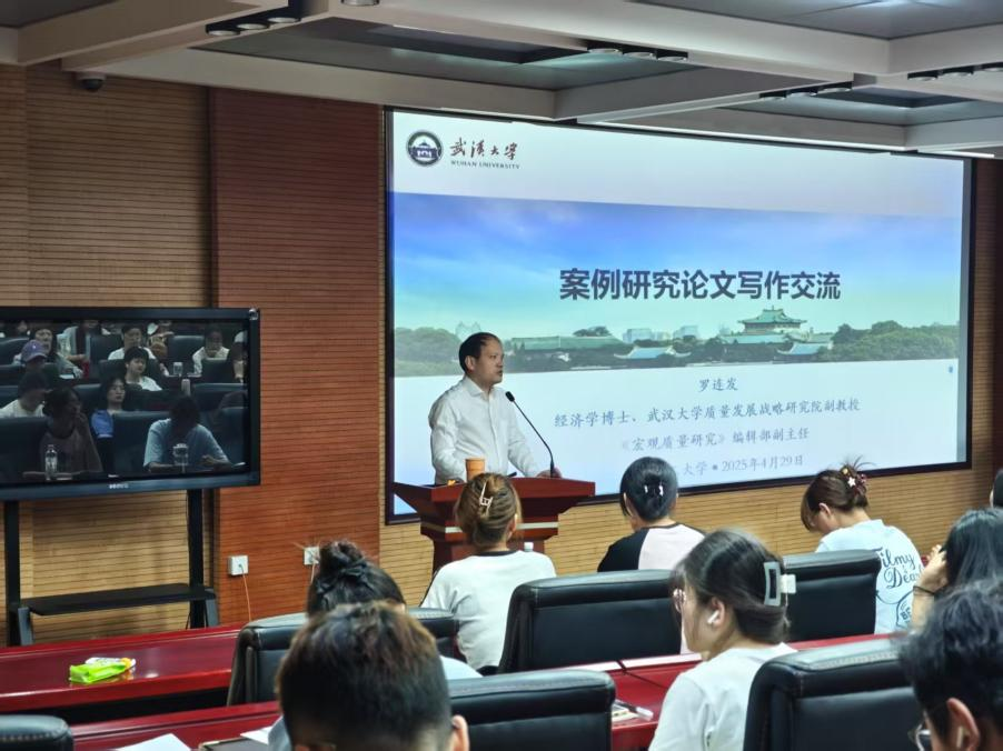 2025年4月29日,武汉大学质量发展战略研究院、《宏观质量研究》编辑部罗连发副主任,应邀到公司9728太阳集团做题为“案例研究论文写作交流”专题讲座。活动在教11EMBA报告厅举办,吸引了近百名师生的参与。活动由9728太阳集团赵璟副经理主持。